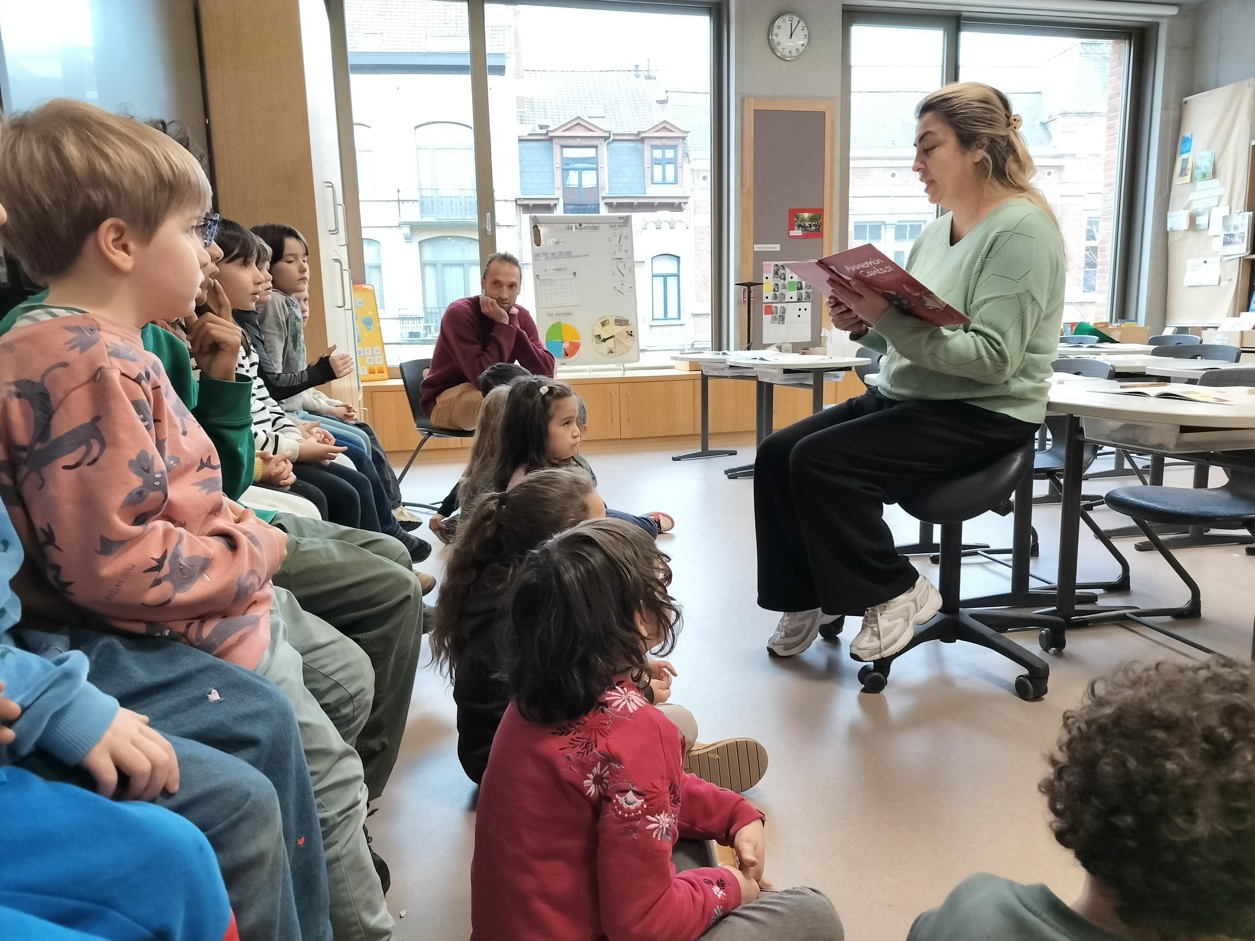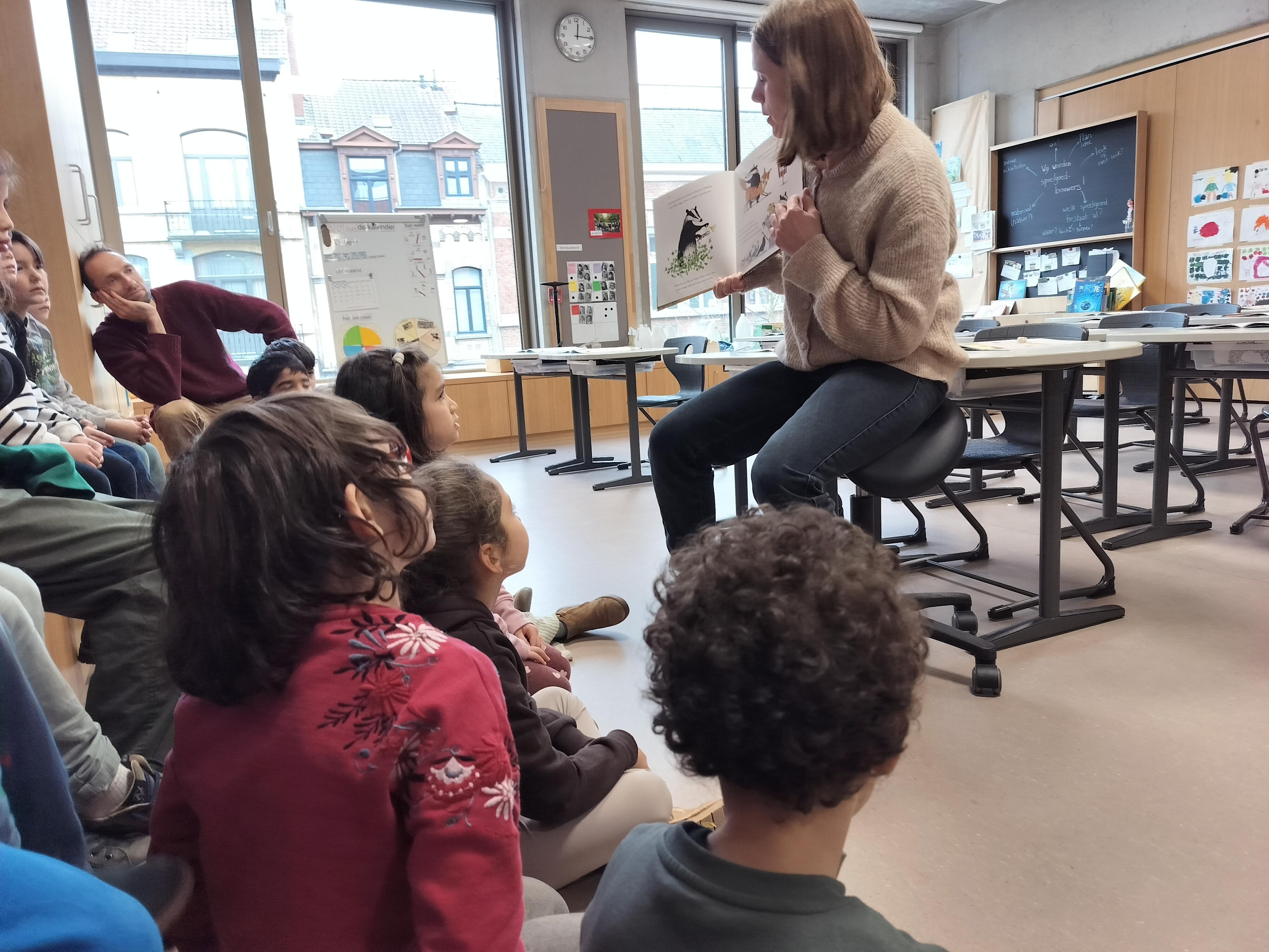 Wij kregen mooi bezoek! Er werd voorgelezen in onze klas.