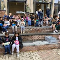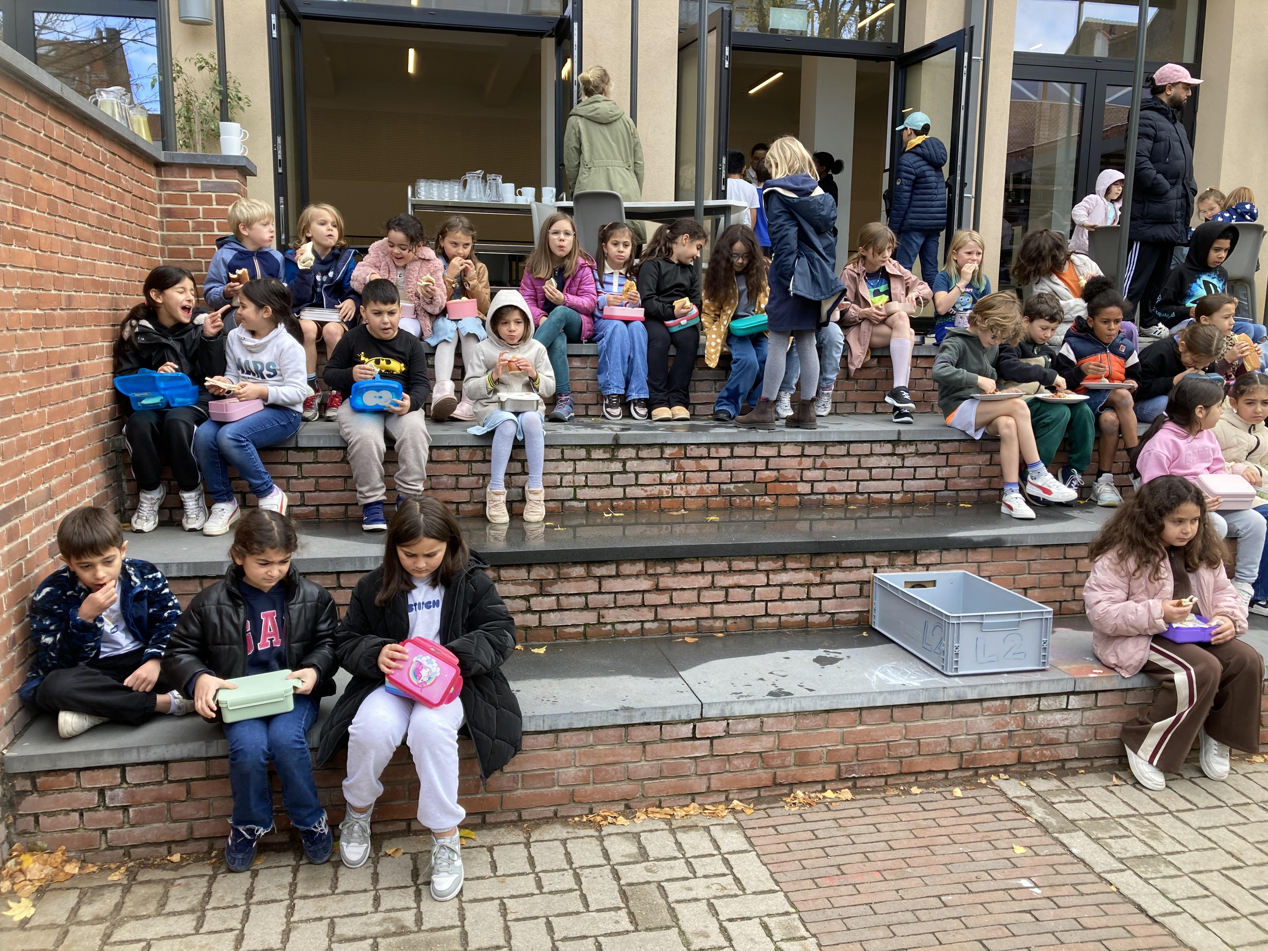 Samen maakten we ook onze eigen stop motion video en we vierden de jarigen met zelfgebakken brownies! Dina en Omer brachten de cake naar de oven.