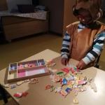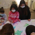 We zijn in 2 groepen verdeelt van3 i en2 groepen van 2.dan hadden we dobbelstenen gegooid voor en kunst werk hebben we geprestenteerd.