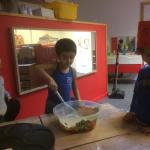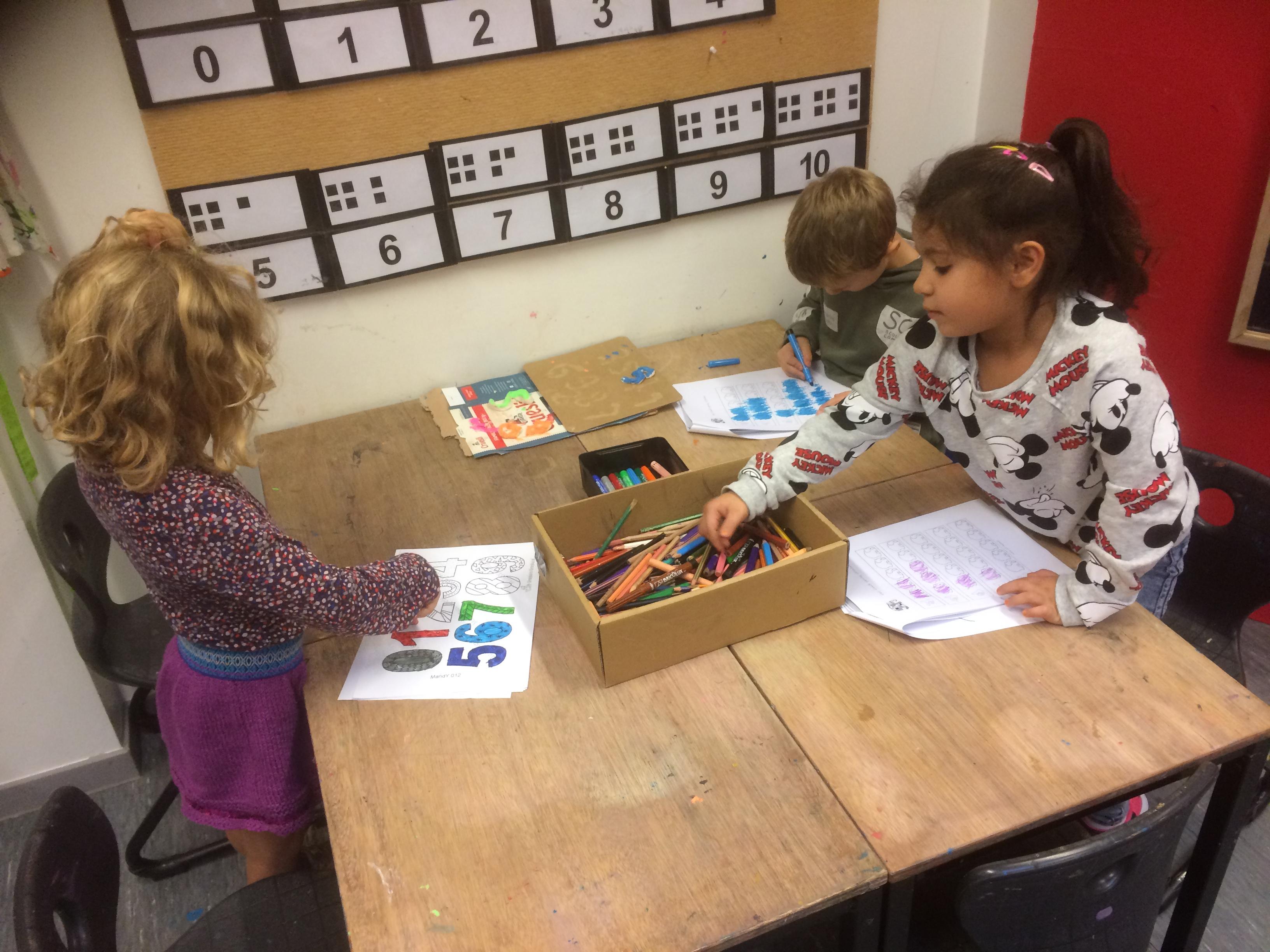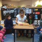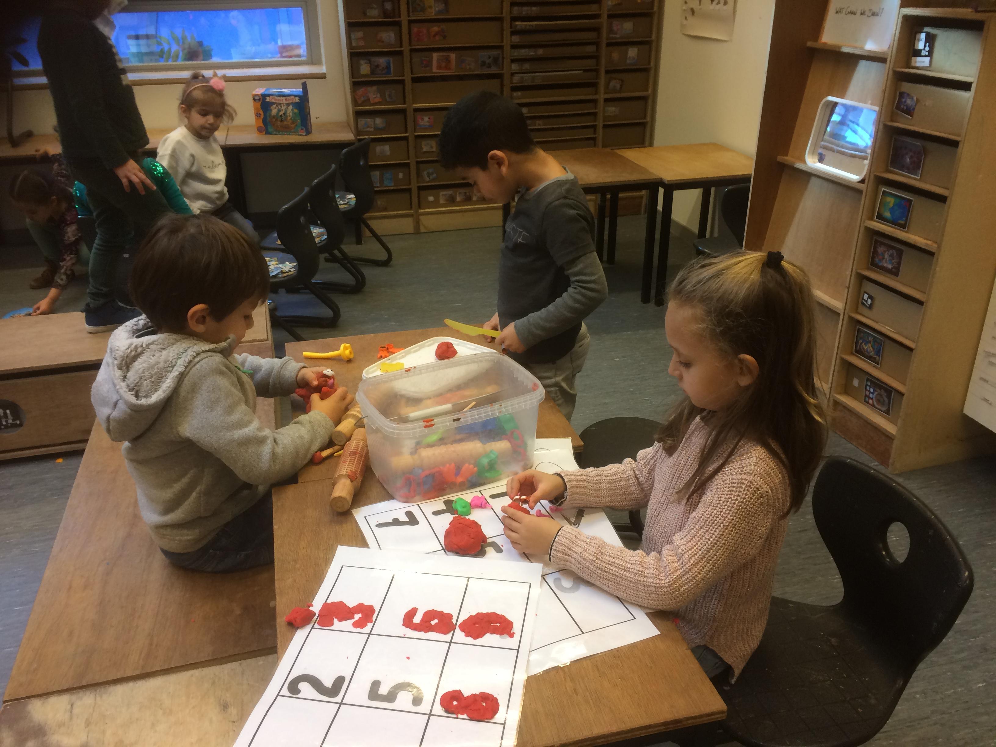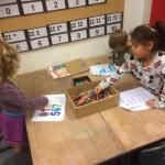 We openden een cijferwinkeltje in onze klas met zelfgemaakte cijfers van zoutdeeg. We spelen spelletjes waarbij we moeten tellen en cijfers herkennen.
