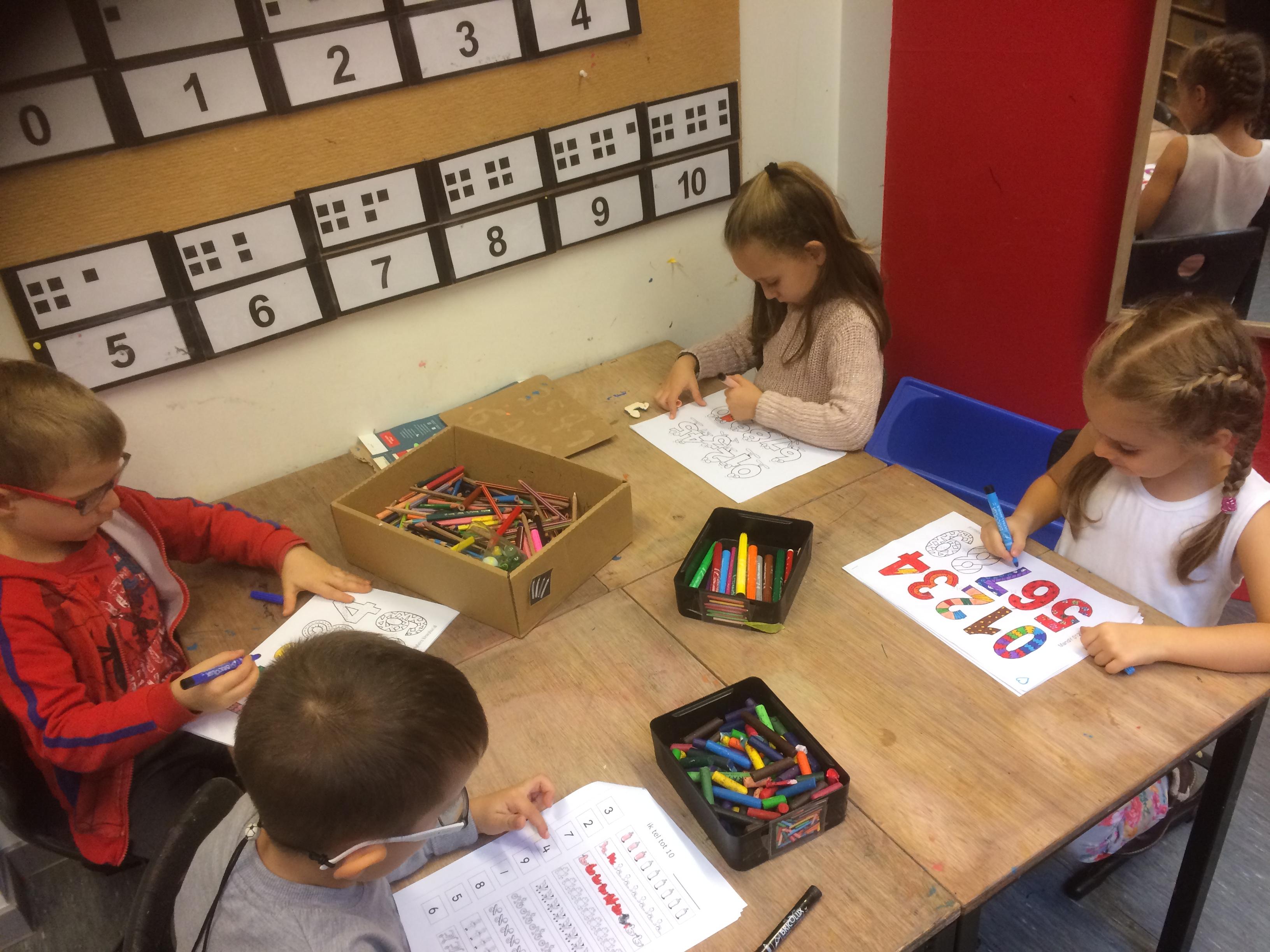 Cijfer, tellen, meer, minder, hetzelfde, bijdoen, wegdoen, .... Moeilijk hoor! Maar we blijven oefenen!