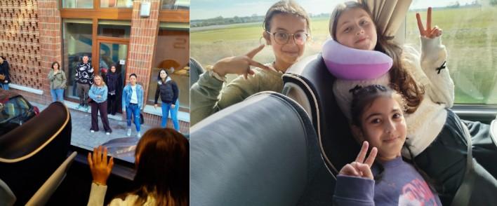 We gingen met de bus, maar de bus was te laat. We vonden dat niet leuk, maar we wachtten geduldig! We zwaaiden naar onze mama's en papa's. In de bus hebben enkele kinderen gehuild. We waren twee uur onderweg. We speelden UNO en andere spelletjes en we lazen in National Geographic.