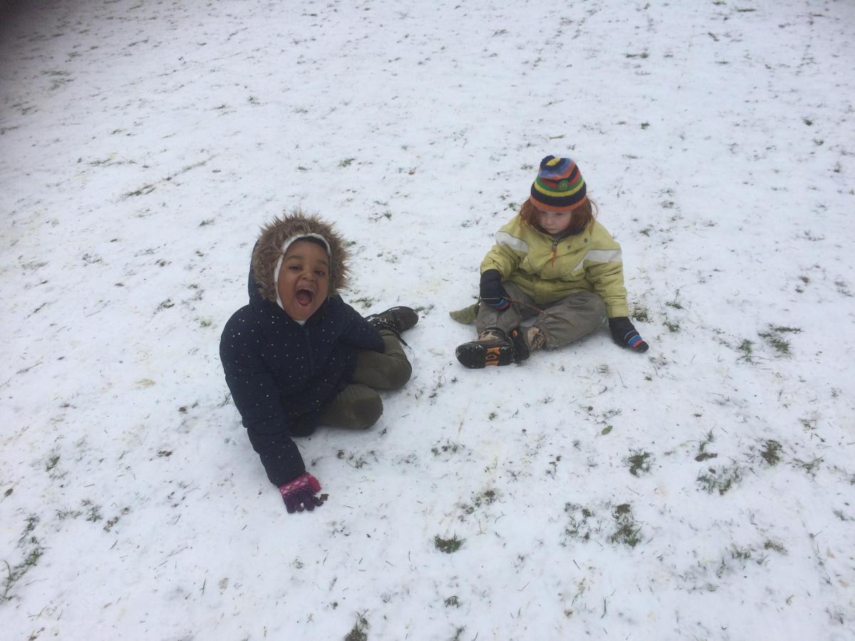 sneeuwpret in het park