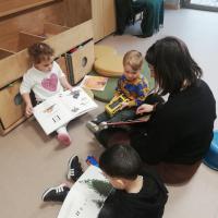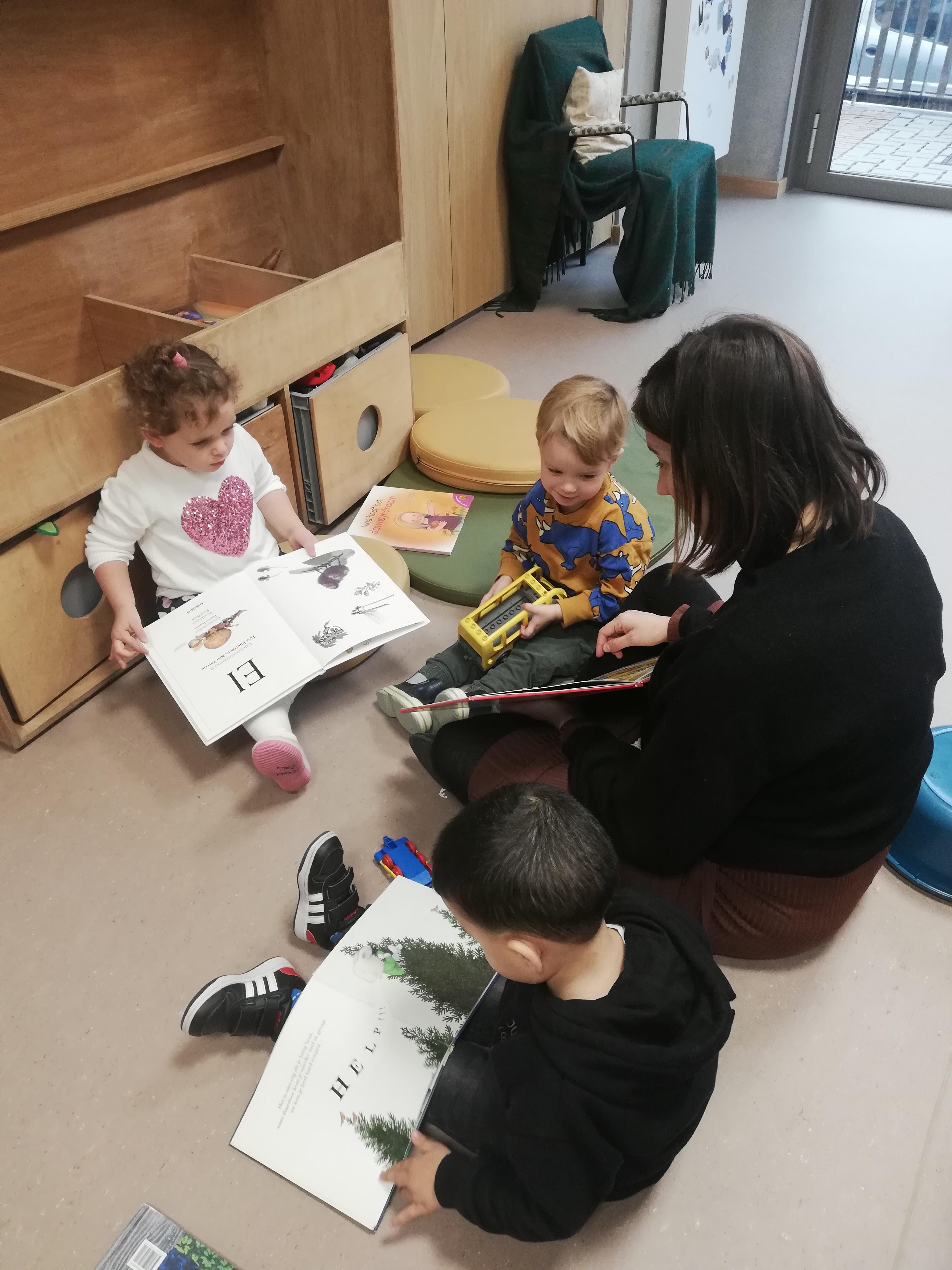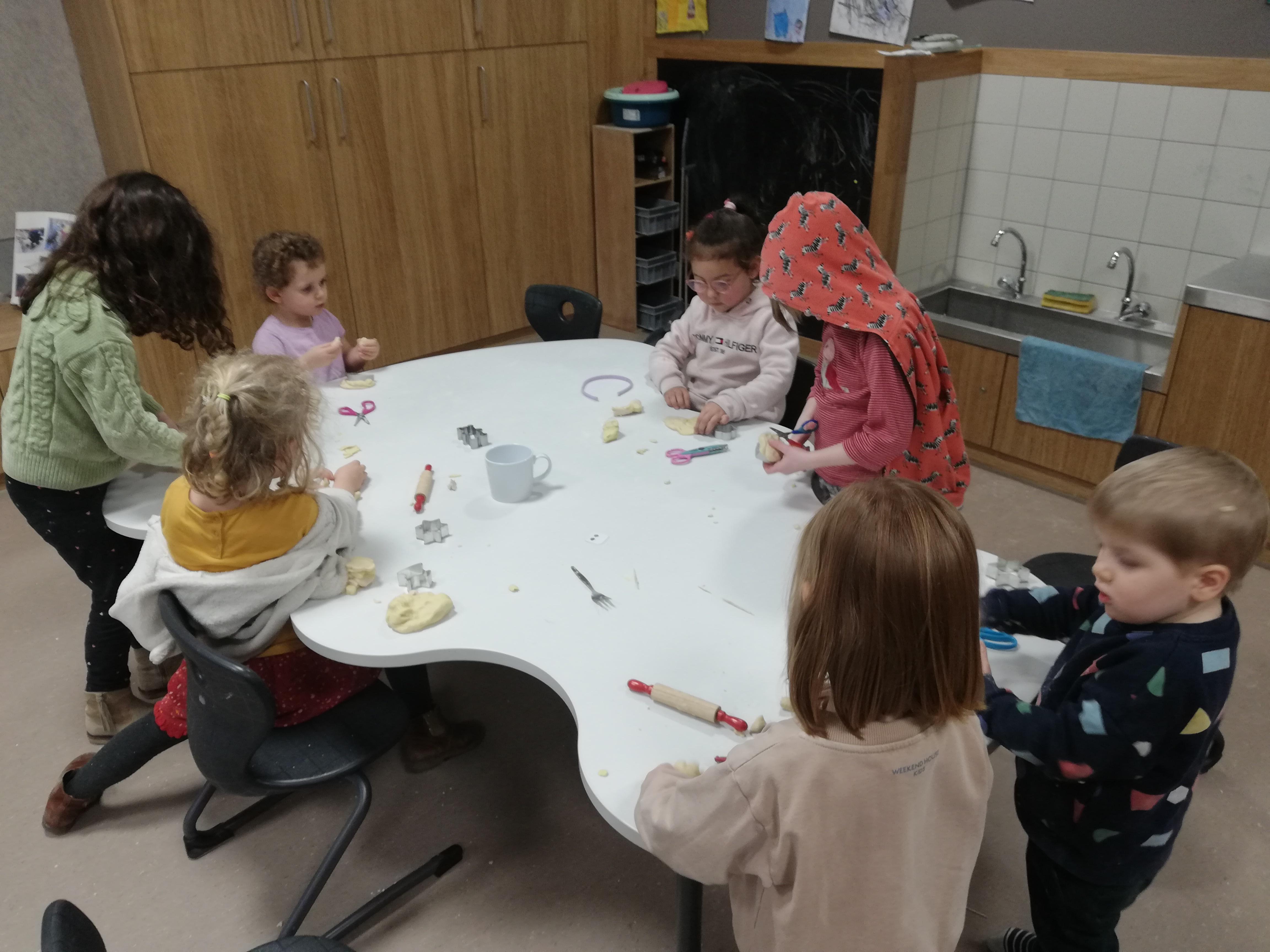- wij die eens op bezoek gingen bij de oudste kleuters en de oudste kleuters die eens met ons kwamen werken.
