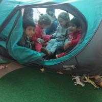 - het verhaal 'klein mannetje heeft geen huis' vertellen en hervertellen en nog eens vertellen.
