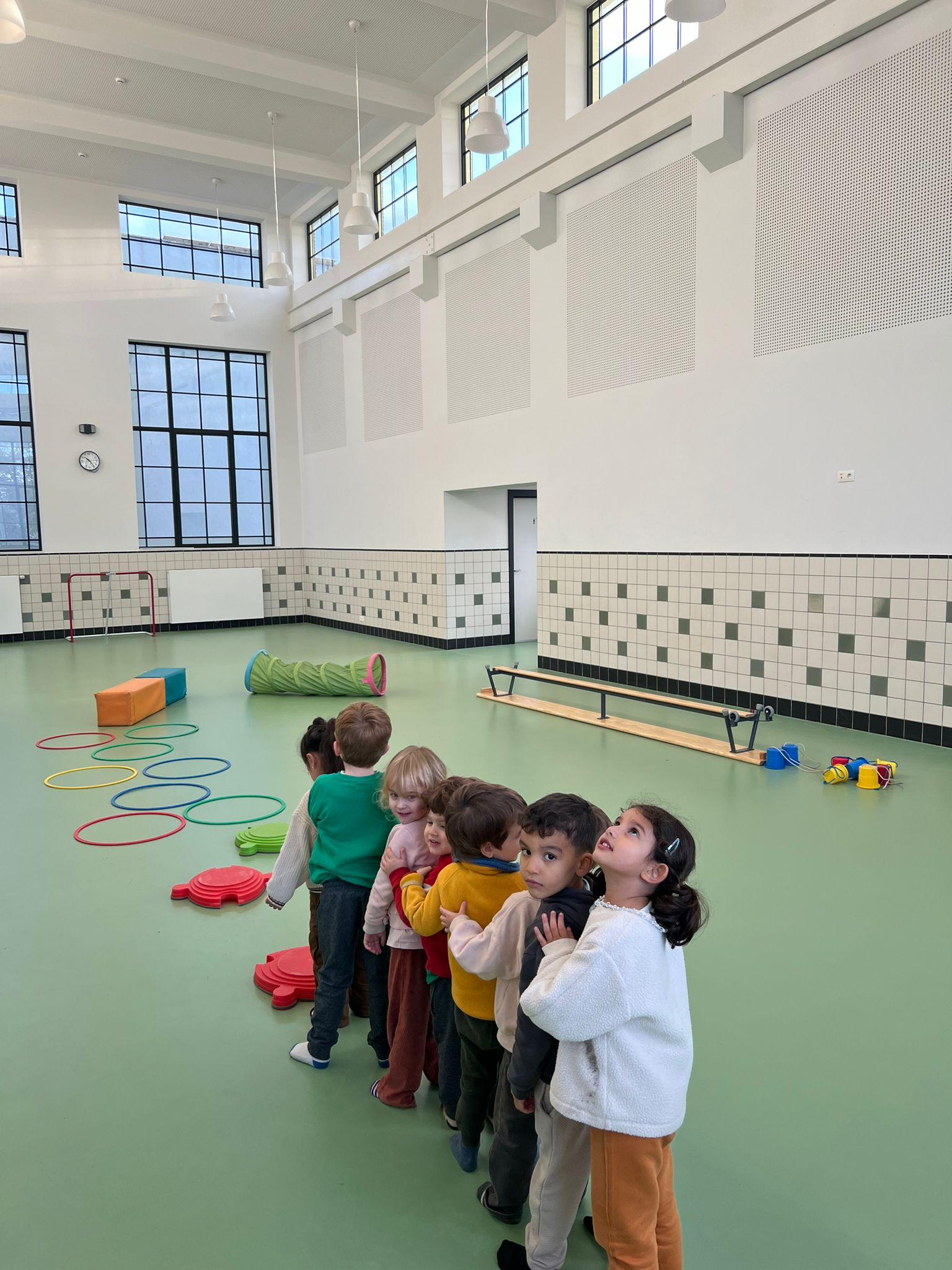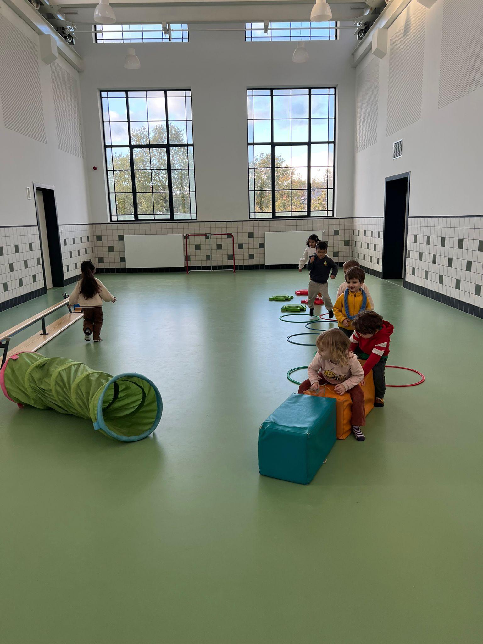 En dan… in de sportzaal raasde een orkaan vol energie rond. We veranderden hoepels in landen die iedereen kon verkennen. Rennen, rollen, springen, het leek wel alsof we met elke beweging de herfstwind zelf een duwtje gaven.